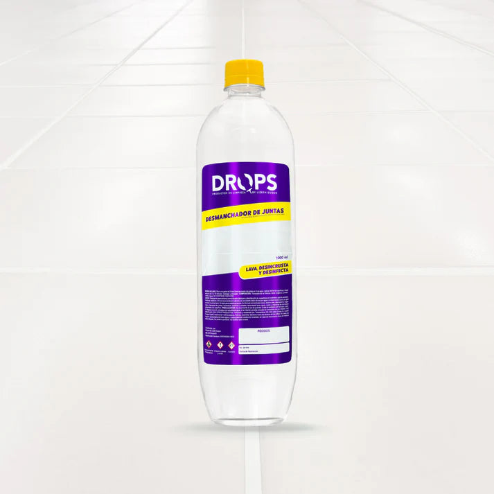 El limpia juntas multiusos de Drops contiene componentes tensoactivos no iónicos, ácido inorgánico, preservante, colorante y agua.